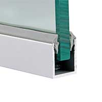 Такий вид монтажу має на увазі установку прозорого полотна в спеціальні осередки, які кріпляться до підлоги або стіни. Профіль може бути виконаний з алюмінію або нержавіючої сталі і пофарбований в різні кольори.